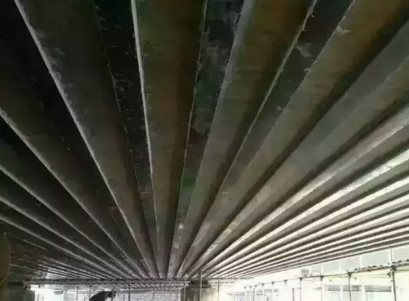 4、碳板應(yīng)力小,耐酸、堿、鹽及大氣環(huán)境的腐蝕,無(wú)須定期維護(hù),且對(duì)內(nèi)部混凝土結(jié)構(gòu)起保護(hù)作用,能達(dá)到雙重加固修補(bǔ)之目的。