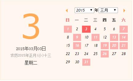 2015年03月09日 農(nóng)歷01月(小)19日 星期一  沖虎(戊寅)煞南