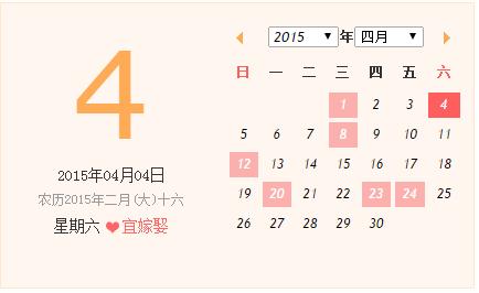 2015年結(jié)婚好日子之4月結(jié)婚吉日