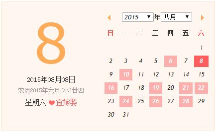 2015年結(jié)婚好日子之8月結(jié)婚吉日