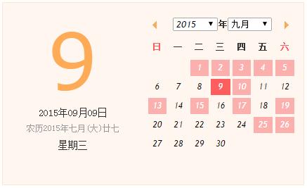 2015年09月19日 農(nóng)歷08月(大)07日 星期六  沖龍(壬辰)煞北
